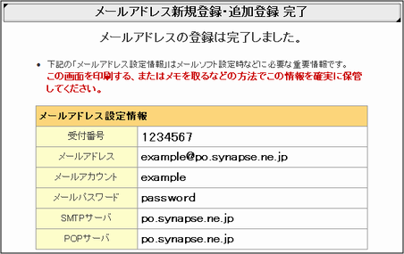 ※必ず画面を印刷するか、誤りのないようにメモをとって、大切に保管してください。
