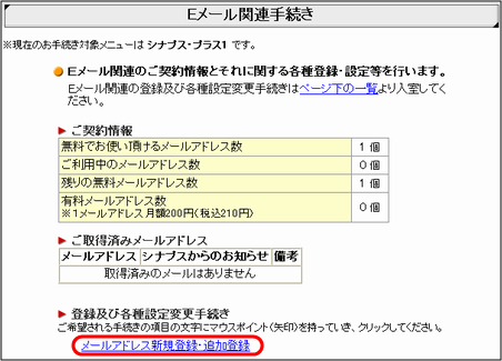 なお、ご利用のサービスによって無料でご利用いただけるメールアドレスの数が異なるため、取得時の画面で、有料・無料の個数をご確認ください。